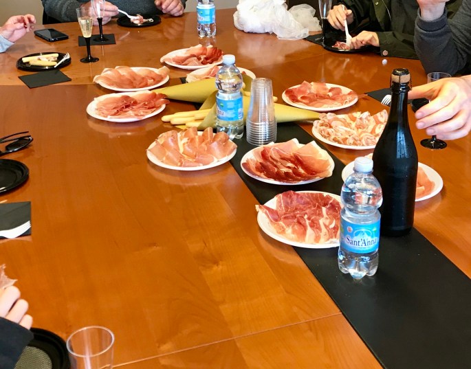 Next was a prosciutto factory, where we learned about the aging process and then tried about 10 different types of meats. We also had more wine! By this point of the tour, we had a lot of food and wine in us, but when in Italy, you need to power through.