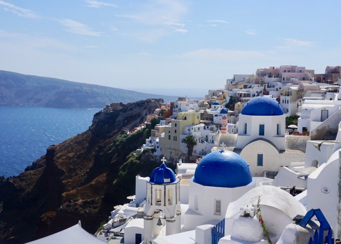 Santorini was a dream. This has been at the top of our travel list for obvious reasons (so, so gorgeous), so we were so excited to finally have it in our itinerary! In Santorini, we stayed in Oia, which is at the northern end of the island. This area is known to be the most beautiful and peaceful, and I agree! The sunset views from Oia are perfect, and we had amazing sunsets 2/3 nights. Most of the hotels are built into the sides of cliffs, so the rooms are caves and all have incredible views over the sea. Did I mention I loved Santorini?